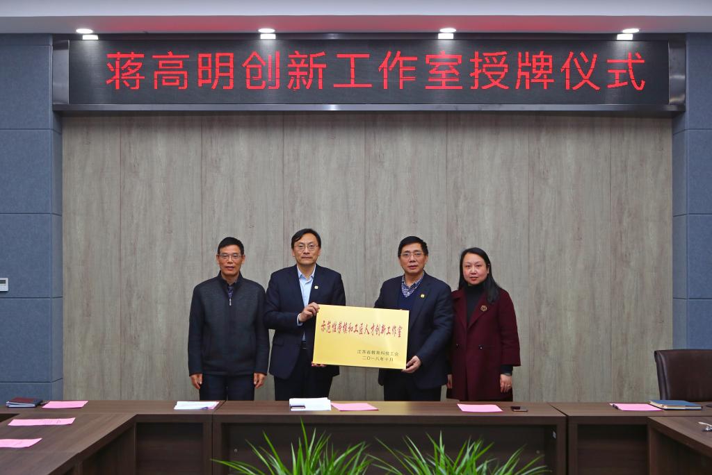 2018年12月24日下午,首批江苏省科教系统示范性劳模和工匠人才创新工作室-蒋高明创新工作室授牌仪式在纺织服装学院B101会议室举行。副校长吴正国、校工会主席冯群康、纺织服装学院党委书记张菁、针织中心主任蒋高明教授及针织中心全体老师参加了本次授牌仪式,会议由校工会副主席李红主持。