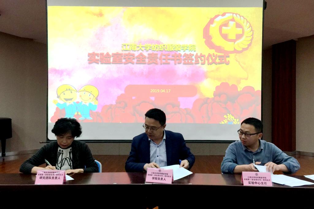 签署《安全责任书》是纺织服装学院实验室安全管理每年必定履行的规定动作,此次签约对象涉及全学院20个科研团队和全部基础实验室。在签约仪式上,学院领导、学院实验中心主任与每一位实验室负责人,郑重地在安全责任书上签上自己的姓名,确保安全责任逐级“落实到岗位、落实到人头”,全体教职员工也接受了一次非常有仪式感的安全教育。
