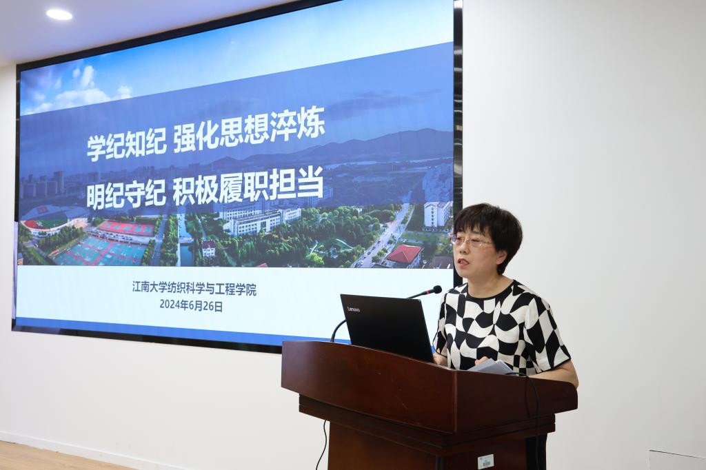 张菁燕以《学纪知纪强化思想淬炼,明纪守纪积极履职担当》为题,从深刻领会习近平总书记关于加强纪律建设的重要论述、准确把握新修订《条例》的主旨要义、切实增强学习贯彻《条例》的坚定性和自觉性等方面,进行了深入浅出的讲解,并结合教育系统违反党的“六大纪律”的实际案例,对相关条款加以阐释。她提到,纪律严明是我们党不断从胜利走向胜利的重要保障,党规党纪的强大生命力,关键在于各级党组织和广大党员干部的自觉遵守。她要求全体教职工党员在全面准确理解《条例》的丰富内涵的基础上,聚焦思想认识、纪律执行、责任担当找差距,围绕教学、科研、管理服务等各领域查风险,立足本职岗位做表率、显担当。她还强调,师生群众的满意度是检验党员干部的试金石,希望全体教职工加强对党员干部的监督,促进党员干部知戒律、讲原则、增服务,切实以党纪学习教育取得的新成效助力学院事业高质量发展。