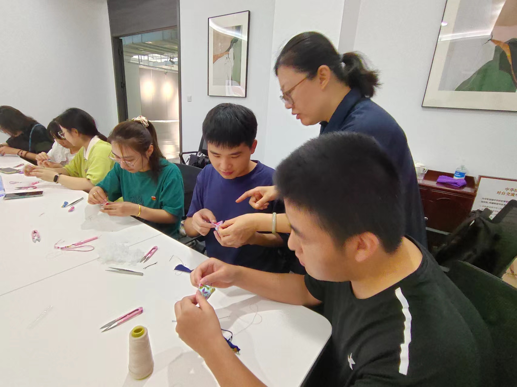 随后,党员们通过开展制作香囊活动,将悠久独特的文化故事细密地缝进香囊里,同时也增强对于传统文化传承的责任感和使命感,勉励党员传承传统非遗技艺,彰显纺织学科魅力与江南文化底蕴,发扬江南纺织精神。