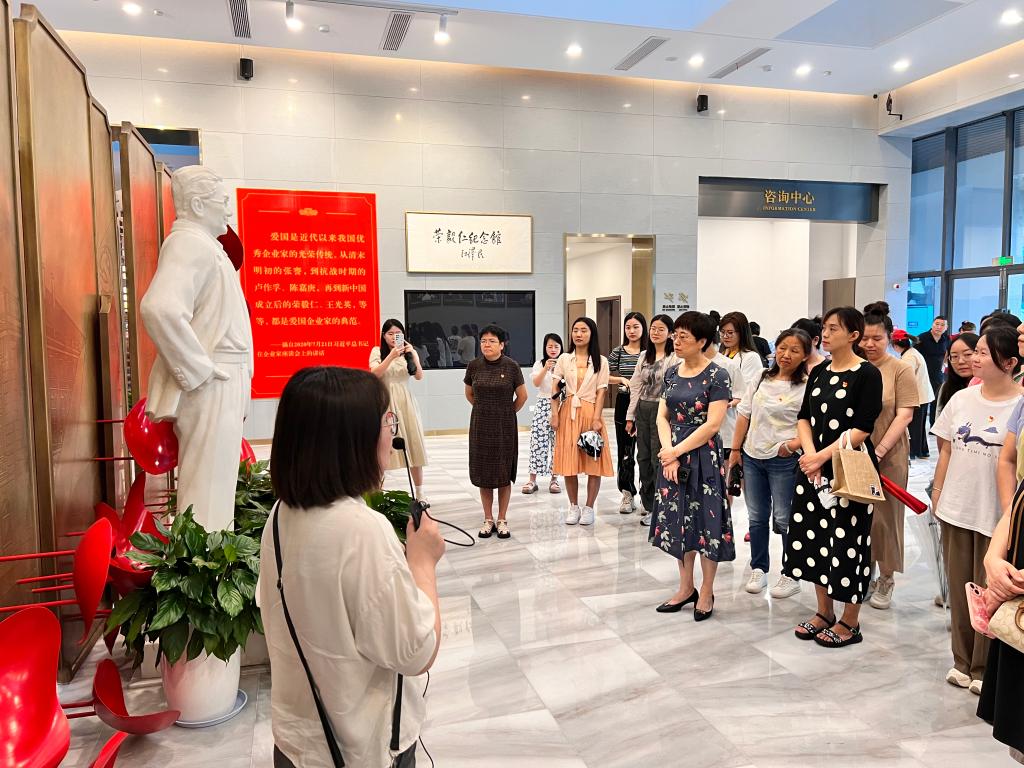 纪念馆全方位、系统性展示了荣毅仁先生为党、为国、为民的光辉业绩和传奇一生。党员同志们通过一件件珍贵的历史文物、一幅幅生动的历史图片,以及详尽的解说,深入了解荣氏家族的创业历程和家风家训,以及荣毅仁先生从一位杰出的民族工商业者转变为伟大爱国主义战士、共产主义战士的生平事迹,用心感悟荣毅仁同志爱国报国之志和强国富民之心,深刻感受了荣氏家族特别是荣毅仁先生对民族纺织工业的卓越贡献和深厚情怀。荣毅仁先生不仅是中国现代纺织工业的奠基人之一,更是以实际行动诠释了“实业救国、科技兴邦”的崇高理念,其坚韧不拔、勇于创新的精神深深打动了在场的每一位师生党员。