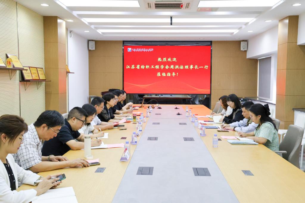 进行调研交流。党委书记张菁燕、院长付少海、副书记杨莉勤、副院长马丕波与张典堂,以及江苏省纺织工程学会针织、服饰、科普、学术等专委会负责人参会。会议由张菁燕主持。