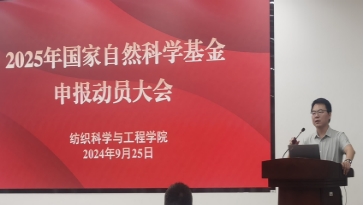 2024年9月25日下午,纺织科学与工程学院2025年国家自然科学基金项目申报动员大会在A103报告厅召开。纺织科学与工程学院院长付少海、科学技术研究院副院长柏玉香、漫画柜