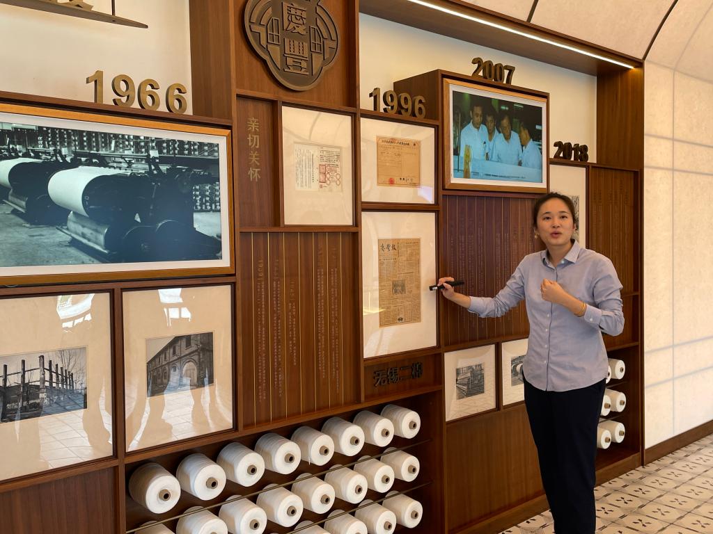 随后,踏着刻印无锡近代工商业发展印记的楼梯来到展馆二楼,工作人员用幻灯片生动讲述庆丰故事,从唐家建厂到发展上市、从防羽布到机械革新、从优秀党员到先进个人,大家纷纷惊叹庆丰纱厂的辉煌。