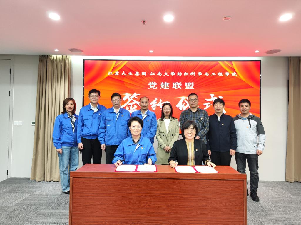 党建联盟签约仪式。纺织系教师党支部书记俞科静、大生集团有限公司部室第三党支部书记李兰女分别代表两个支部签约,今后,两支部将深入实施“联学、联建、联育、联创”四联党建工作机制,在思想引领、组织机制、人才培养、创优创新等领域交流合作,有效促进双方深度融合发展。