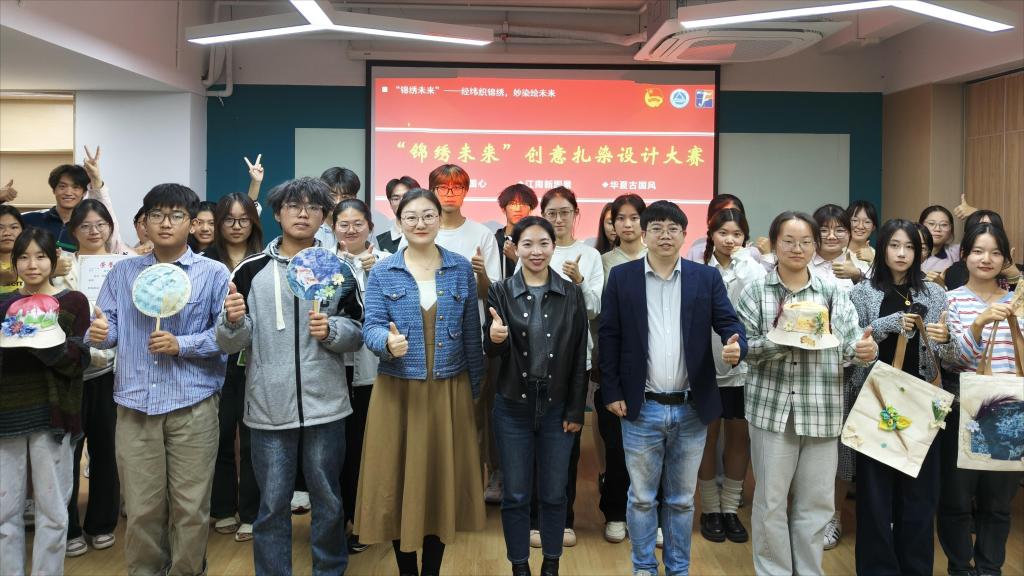 “锦绣未来”创意扎染设计大赛决赛在梅园“一站式”学生社区成功举办。学院轻化工程系教师戴磊、苏静,纺织工程系教师王清清、陈超余,学院学工办主任兼分团委书记任学敏等出席大赛并担任评委。学生参赛团队、学生观众及学生会成员参加活动。