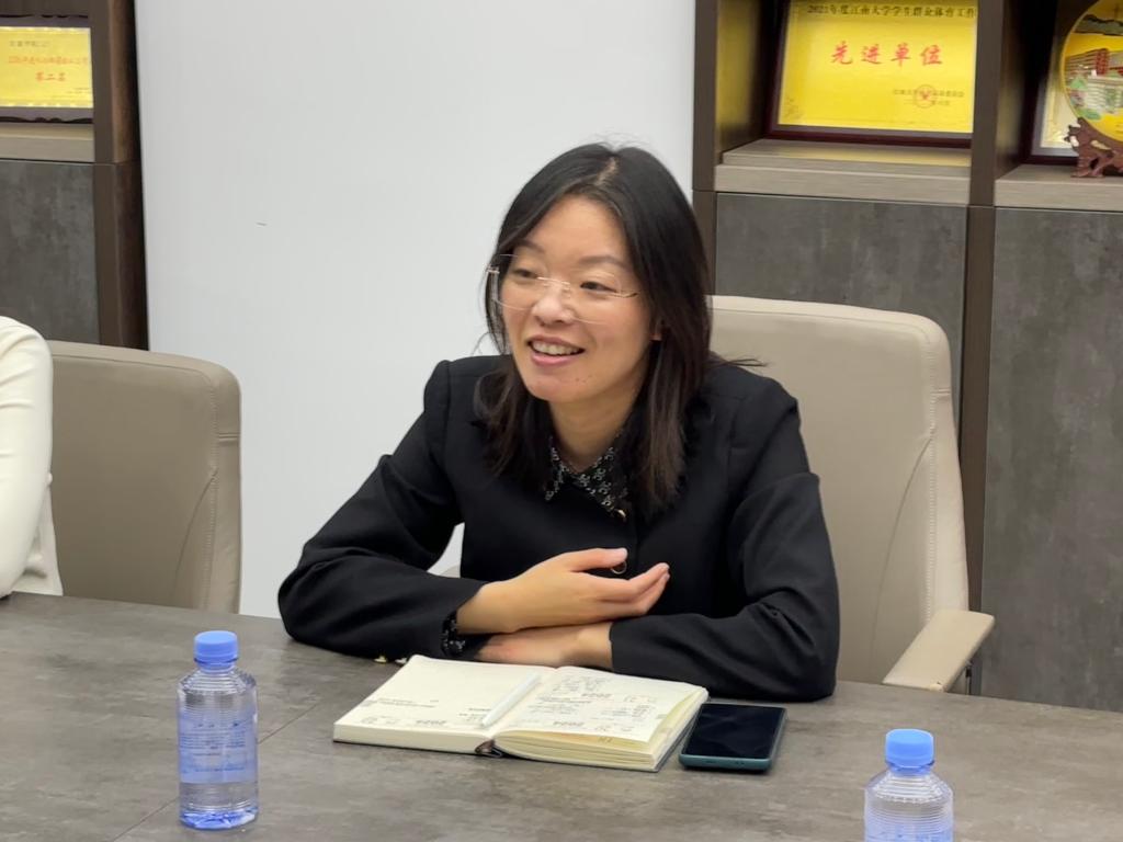 首先,杨莉勤对尤立忠副校长一行的来访表示热烈欢迎,她简要介绍“织光者协会”成立的初衷,以及“织”行科普的实践成果和未来规划,表达了在科普知识宣讲、科创教育等方面进一步合作的期待,希望能携手推进“纺织科普进小学”活动项目,实现更为具体、有效的合作。