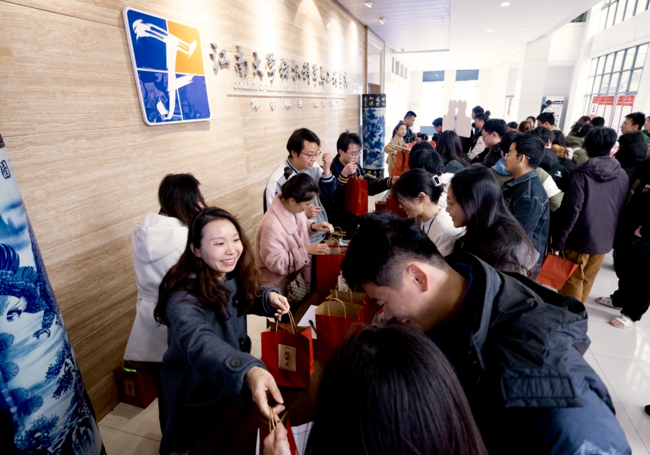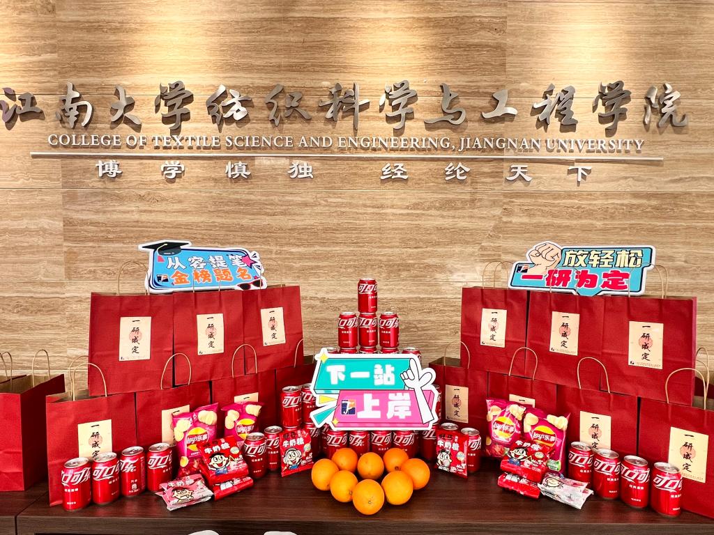 慰问现场气氛热烈,班主任为班级考研学生送上学院精心准备的考研福袋:“心想事成”橙子、“乐事将至”薯片、“一举夺罐”可乐、“福运旺旺”旺仔牛奶糖,表达学院对考研学子的深切关怀与美好祝愿,预祝同学们金榜题名,一战成“硕”。