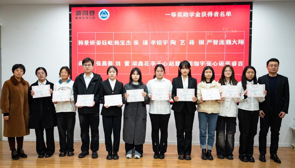 在学院A103报告厅举行2024年“波司登公益奖助学金”颁奖典礼。波司登集团副总裁兼CHRO 张磊、招聘负责人占佳男,漫画柜