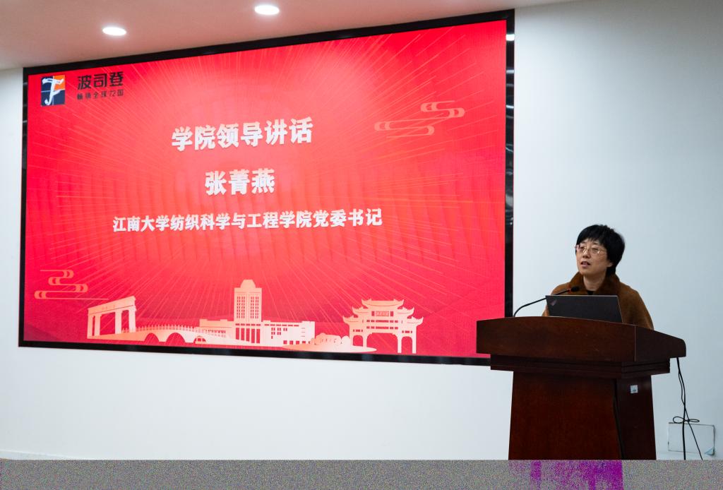 最后,张菁燕总结讲话,她对波司登集团一直以来对学校教育事业发展和纺织服装行业人才培养的支持表示衷心感谢,并向大家分享了学校以及学院近几年取得的成果。她希望同学们学习波司登集团勇攀高峰、勇于挑战的“登峰精神”,不断改革创新、突破自我、追求卓越。她激励在座同学要弘扬波司登“温暖全世界”的情怀,以青春之智、奋进之力,成为“温暖”的创造者与传递者,成就更好的自己。