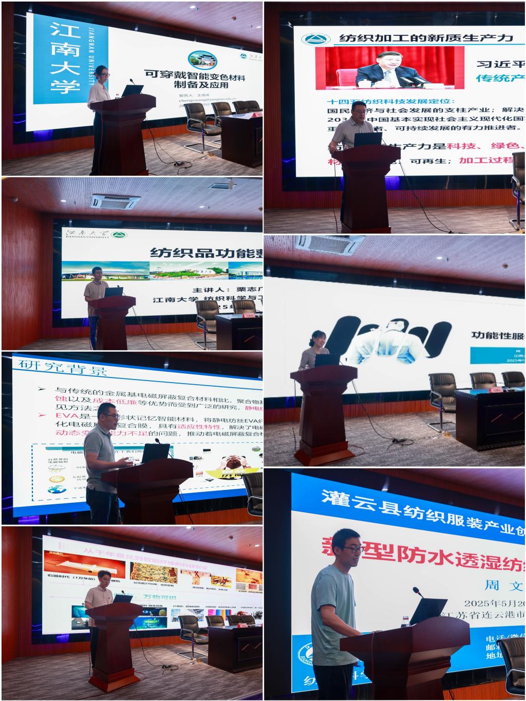 付少海、栗志广、李大伟、李文兵、周文、王成成等8位老师在研讨会上作专题演讲,围绕纺织材料,分享其在生态染整、功能服装设计、功能整理、智能电磁屏蔽、生物医用、防水透湿、智能变色及传统面料蜕变等高端应用领域的前沿成果,探索纺织与智能科技融合,展望行业未来。