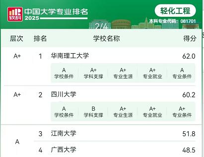 纺织工程稳居顶尖,轻化工程领跑行业