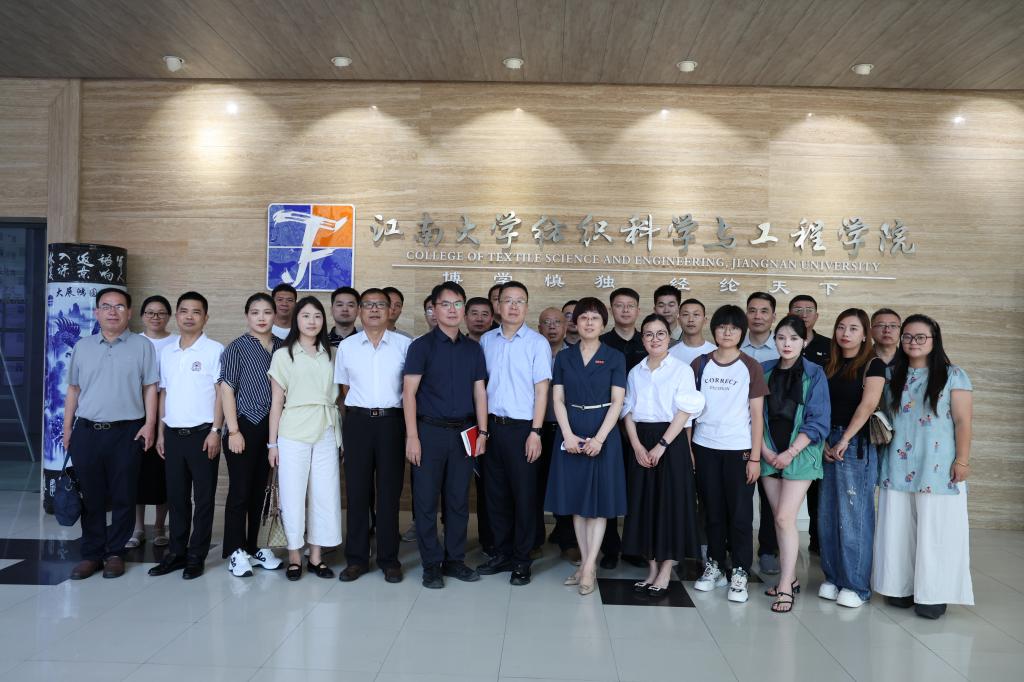 活动伊始,泗阳县企业家代表团一行在学院领导的陪同下,参观了针织技术教育部工程研究中心,实地了解了中心在针织智能制造、针织新型材料等领域的突破性科研进展与产业化应用案例。