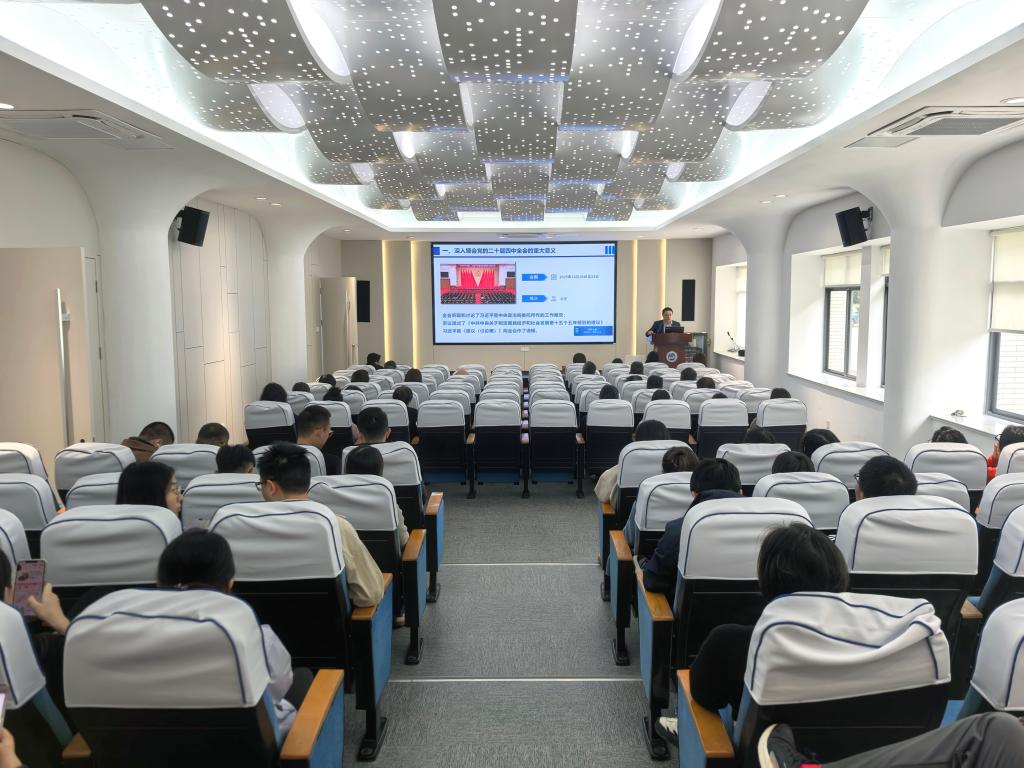 在A103会议室召开全体教职工大会,集体学习党的二十届四中全会精神。学院党委书记张菁燕主持会议,领导班子成员及全体在校教职工参加学习,共同感悟思想伟力、凝聚发展共识。