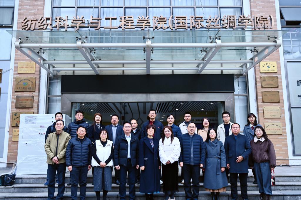 (国际丝绸学院),学院党委书记苏淼、院长于斌携班子成员参加了座谈交流会。双方分别介绍了各自办学特色、学科优势与发展思路,围绕党建与事业发展深度融合、专业建设、课程改革、成果转化、青年教师发展等内容开展务实交流。双方坦诚沟通、深入探讨,就新时代纺织学科建设与人才培养等方面形成了广泛共识。