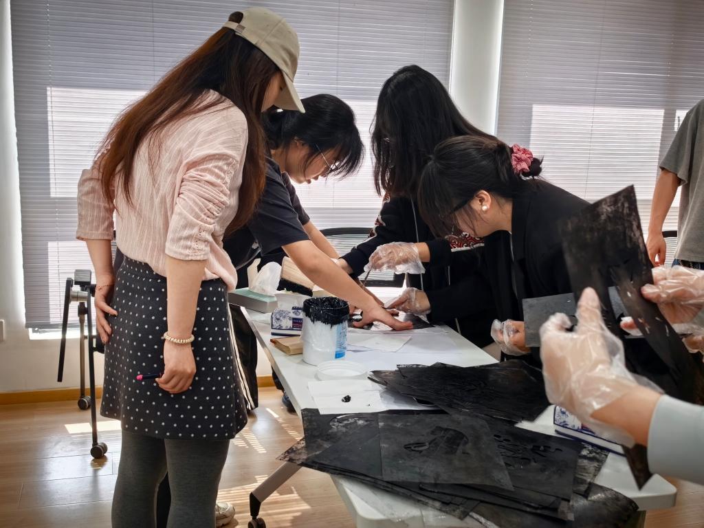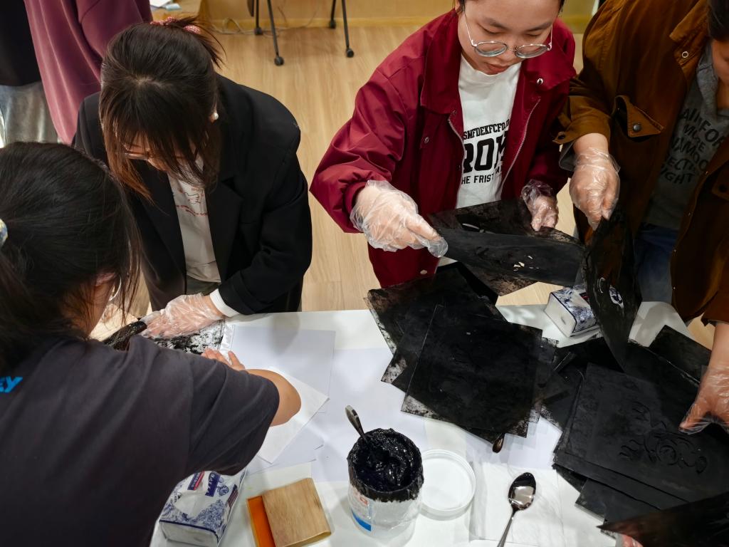 竞赛间隙,“丝网印花”特色体验活动同步开展。选手们亲身体验丝网印花的独特魅力,从手工刮印到图案呈现,每一步都凝聚着对传统纺织技艺的敬畏与热爱。一块块纹样精巧的印花作品,不仅是纺织文化的鲜活载体,更让选手们在沉浸式体验中感受传统工艺的艺术价值。