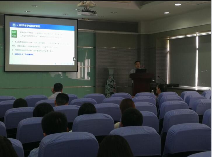 潘如如副院长首先作学院2016年青年教师科研情况报告,他从科研项目、发表论文、授权专利三个方面分析了漫画柜