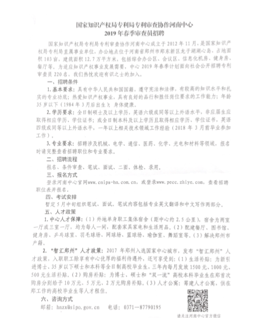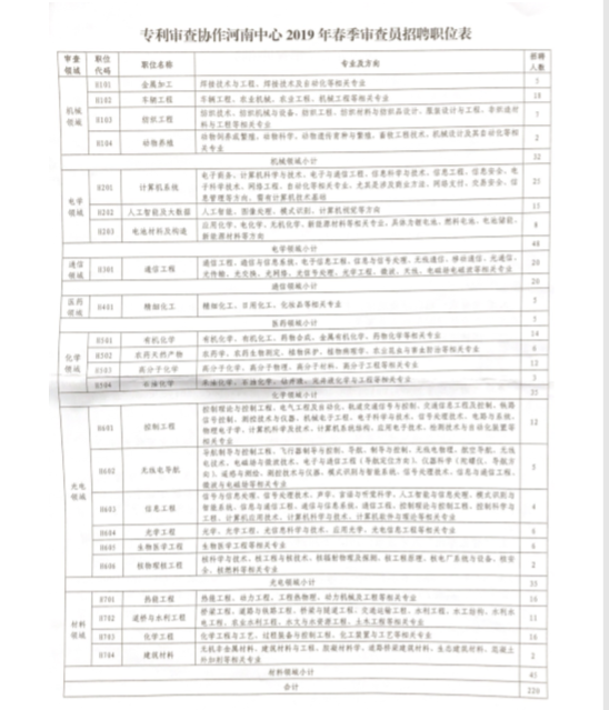 纺服学院【2019】78号 国家知识产权局专利局2019春季审查员招聘