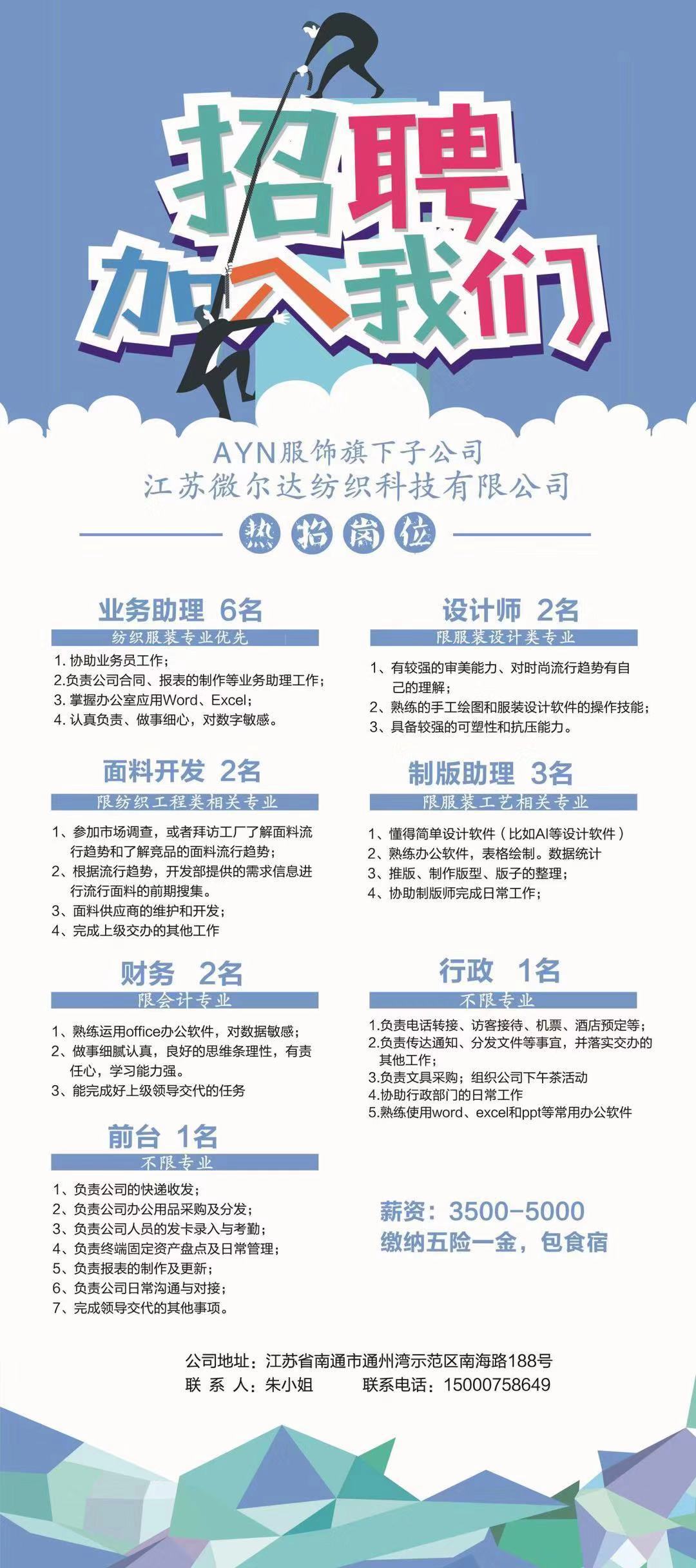 纺服学院【2019】62号 江苏微尔达纺织科技有限公司2019校园招聘