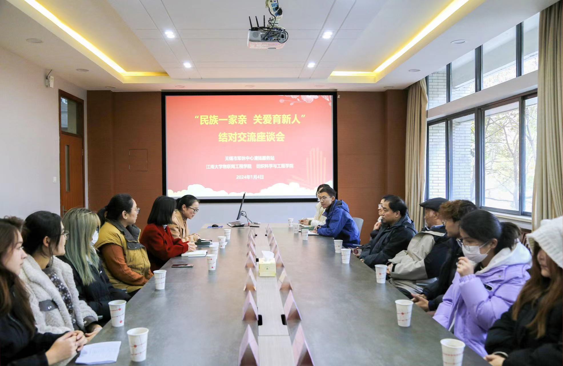 、物联网工程学院举办“民族一家亲,关爱育新人”新春慰问座谈会。无锡军分区原司令员朱长兴,无锡市军休中心清扬服务站副站长王晓磊,纺织科学与工程学院党委副书记、副院长杨莉勤,物联网工程学院党委副书记、副院长孔丽丹,学院辅导员以及少数民族学生代表参加座谈会。